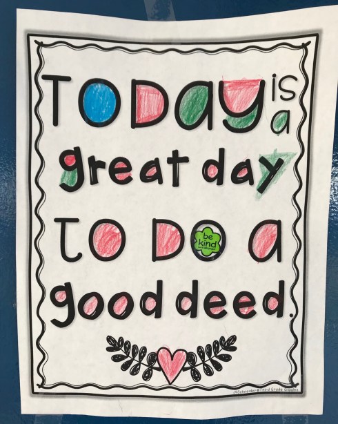 I saw this not long ago taped to the hallway wall at a local elementary school. Yesterday was a good day to do this. Tomorrow might be even better. But the best day of all is today.