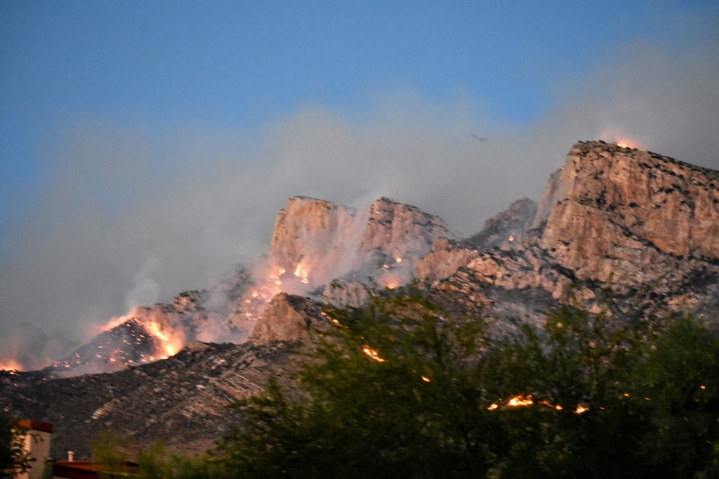 And now the mountain burns. A lightening strike that could have touched anywhere. Majestic trees lining the upper ridges explode in the intense heat, animals scurry to find shelter, a thick blanket of gray smoke churns in the upward draft of heat, then lounges casually in the blackened canyons.