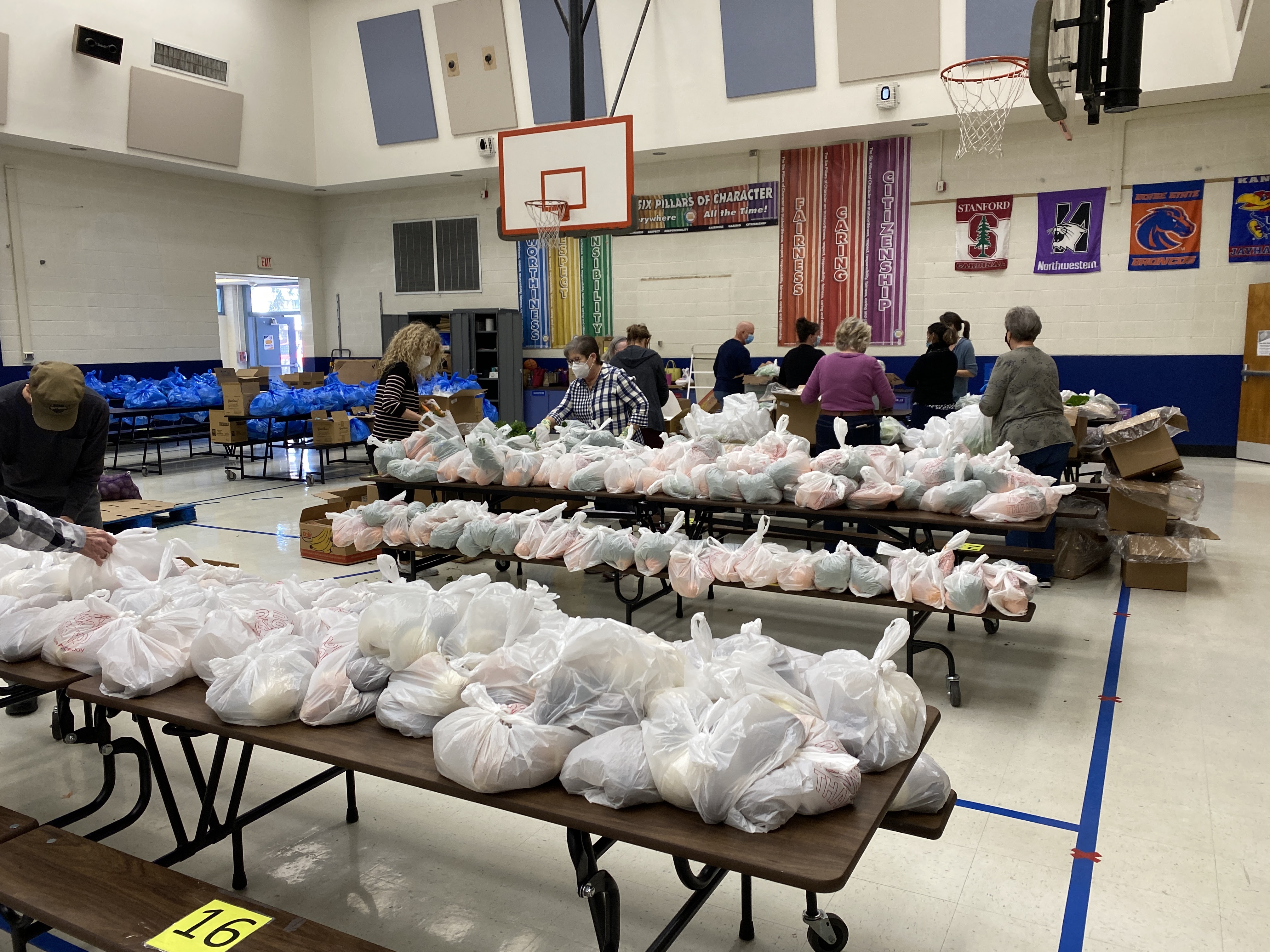 Yesterday fifteen people got together and filled 100 plastic bags with various canned foods, pasta, rice, beans (the blue bags in the distance) and added the white bags in the foreground which contain fresh produce. Their efforts to reduce hunger didn’t make the morning news, and, of course, they didn’t eliminate hunger as a social plague. So did it make a difference? Ask the 100 families who picked up the bags later in the day. The time spent preparing the 100 bags was not done for publicity, applause or headlines. It was done because the need exists, because no child should be hungry, and because the volunteers were motivated, not by hungry people, but by a common faith they share, a faith stance that redefines the word “neighbor”. If you don’t mind my asking: What do you do, as an expression of your faith commitment, to make a difference in someone’s life? May the Spirit tug at our sleeves and whisper in our ears until we finally say: “Here I am, Lord.” The Word of God lived out in the simple acts of compassion. Amen.