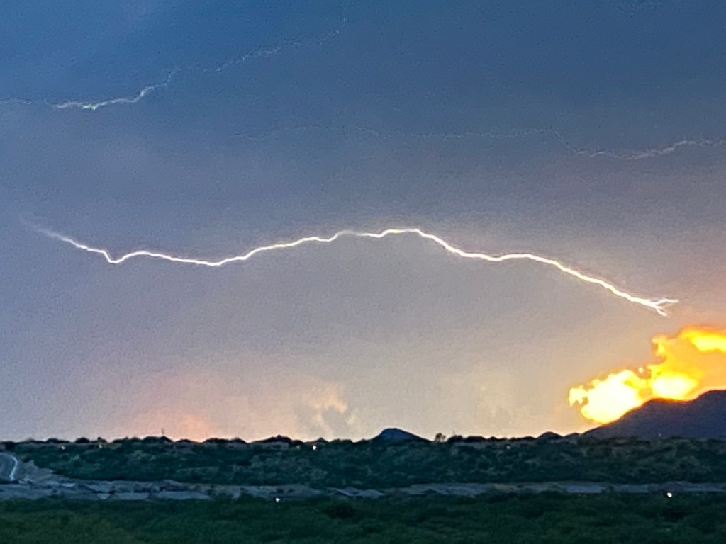 In the almost dark of night, the Mountain said: “Let the cloak of night fall over us and bring us peace and rest.” And in moments, lights went out in houses, cars vanished from the streets and the earth was silent. Sun, hearing Mountain’s wish, said to himself: “I will give one last display of my presence and my power. I will burst through that reluctant opening in the clouds, just there over the peak of the Mountain, and I will demonstrate the Beauty that I possess.” And within moments, stunning reds and oranges and yellows exploded through the cloud opening. Astonishing beauty. Watching and listening to both Mountain and Sun, the vast expanse of Sky smiled knowingly and whispered: “Watch this.” Then with one stroke of a celestial brush, Sky painted a jagged line across the dark canvas, over the Mountain, momentarily startling, there and gone. The Human saw it all, everything detonated at once, quite by chance and good fortune, never again to be seen in exactly this configuration. One blink and the fullness of Beauty was away to another moment in another place. On a dark and foreboding night, when ominous clouds hide the Moon and there is a hint of stirring in the air, that’s the time to pull the chair near the window, sit undisturbed, wait. Something good happens for those who wait, watch, and look through eyes of wonder. The Artist does remarkable work. Regard it all as a gift. Receive it all with gratitude. You’ve just experienced The Sacred.