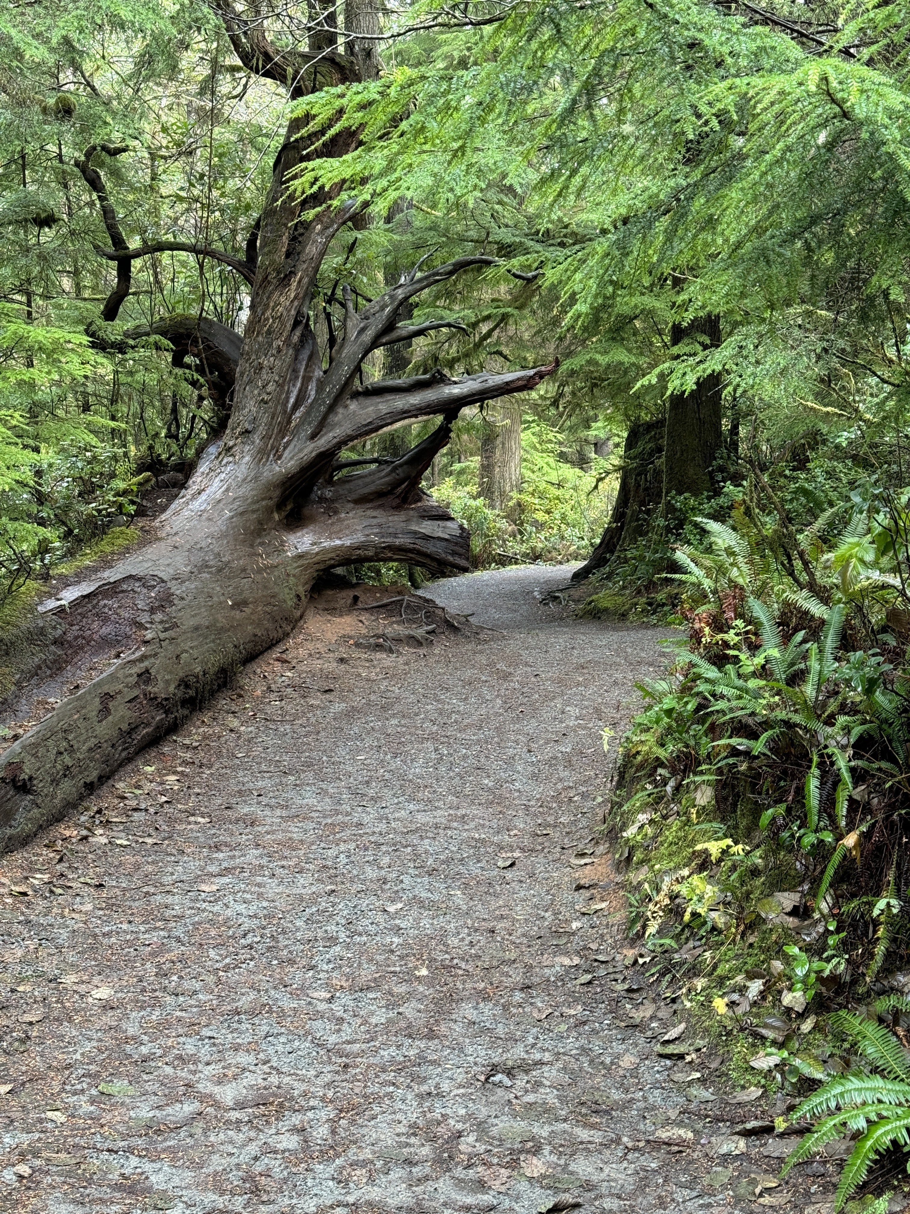 11 DecCome on. Let’s go for a walk. Mind that big fallen tree on the left. This is one of my favorite pathways and I thought you might like it, too. That wonderful sound you hear is the song of a very happy stream, also on our left. It twists and turns, all the while pushing its way to the ocean. There aren’t many flowers along the way, but the trees are dense and tall, like a rain forest because there is a dampness that makes everything glisten. I love the sound of gravel crunching as we walk past more fallen giants, past rock formations that look just like art exhibits in a classy gallery. If we stop for a moment and stand very still, we can hear the ocean surf hitting the rocky beach behind us, the cracking of twigs off to our right. Don’t worry…no bears; maybe a moose or one of the hundreds of deer that live in these woods. As we keep moving, the path will twist and turn following the stream and we will see exhibit after exhibit of Creation’s glory. Want to sit for a few minutes and listen to the heartbeat of the universe? How about right here? Make yourself comfortable. This is a moment you will remember for a long time.
