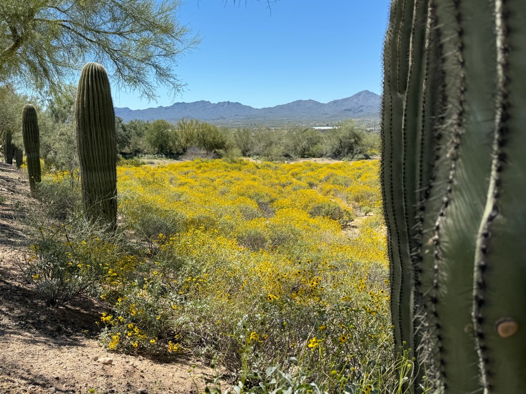 7 AprNobody planted this field of Brittlebush. No straight rows. No careful cultivation. They bloom because they’re there, on the corner of a busy intersection, quite visible for everyone to see. You’ve heard the phrase: Bloom where you’re planted. Maybe it should be “bloom wherever you happen to be,” in every unexpected moment, every unplanned encounter.