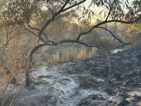 Now, two days later, all that remains is scorched and scarred earth, the stronger and healthier trees, and the little river that continues to flow. A number of observations can be made about this potentially destructive blaze. Nature has a way of renewing and restoring life when something like this happens. The soil is now enriched with nutrients, there is room for new growth. It won’t be long before green shoots break through the black, hard surface. But the most encouraging thing about this rather sad sight is the river. The river. It flows through the center of the woundedness and everywhere it touches, it encourages new life.