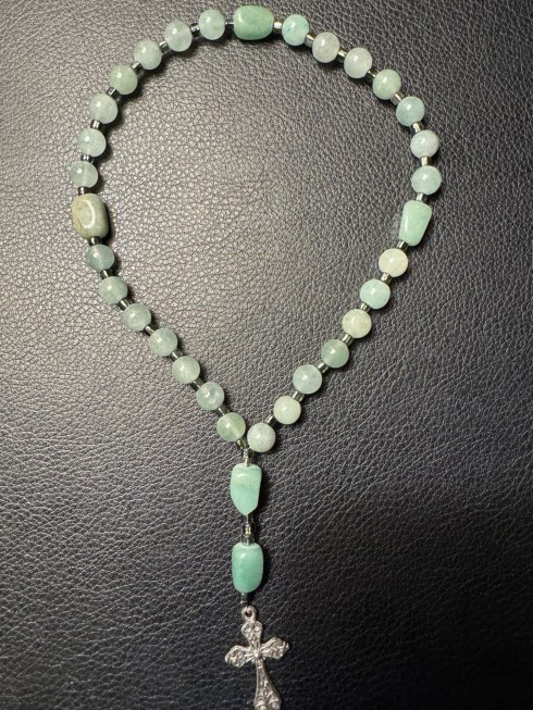 Never having made a prayer resource like this before, when the instructor handed me a box of colorful stones, a small silver cross and a piece of common wire and said: “Ok, here’s all you need,” I thought: Where do I start? With instruction and time, this was the result. I think it’s rather pretty, but what makes it a resource of personal prayer is the unseen wire that holds it all together. Without the wire, it falls apart.